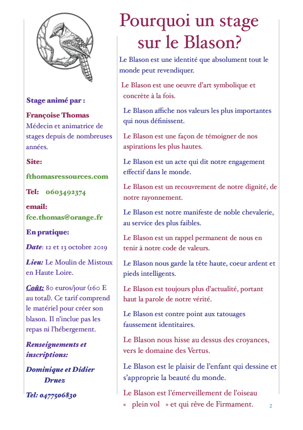 Retrouver une tradition occidentale, initialisée en France au 12° siècle, nous reconnecte avec ces vertus qui furent jetées aux oubliettes avec mépris et dont on est bien obligé de voir qu’elles manquent cruellement à notre temps et notre société.